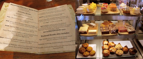 Seddon Deadly Sins, located in Seddon (funnily enough) also boasts decent, if a tad too hot coffee and incredibly friendly service. While I waited for my friend to arrive I sat in the front part of the cafe, spellbound by the cakje fridge, as regulars came and went for coffee and breakfast. We soon moved to the relaxing little courtyard out the back to order breakfast from the Little Golden Book encased menus.